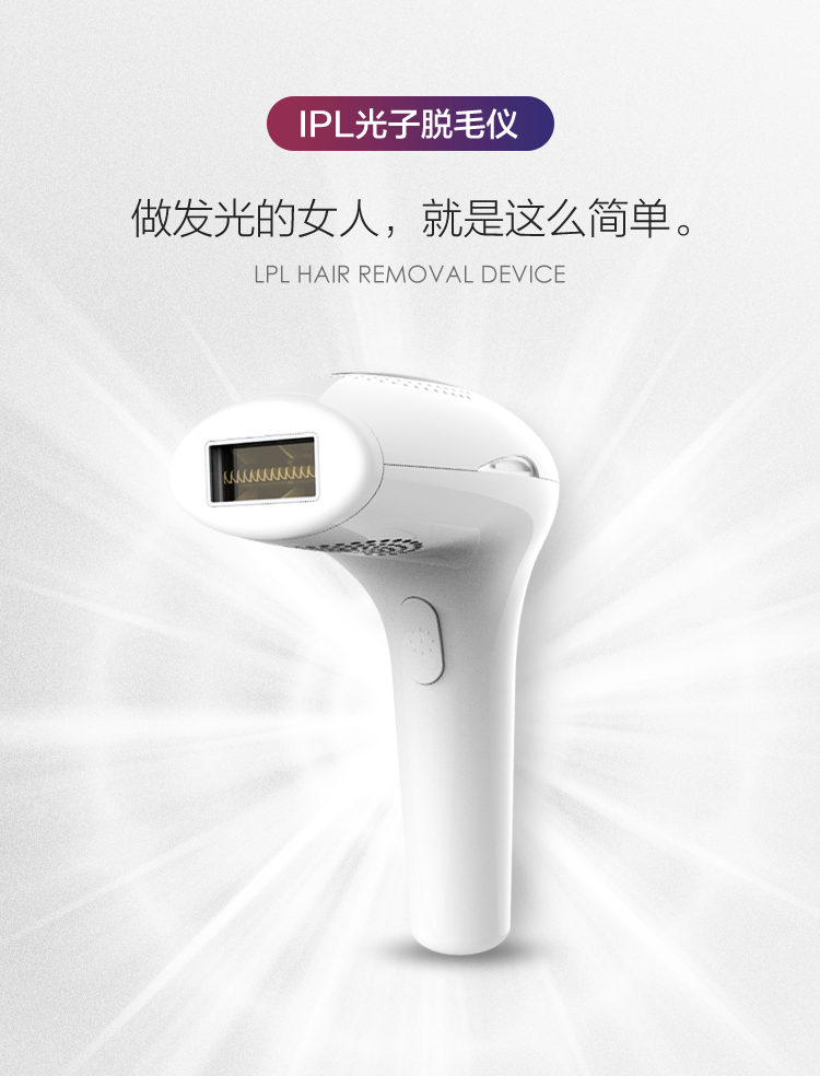 全身脫毛 · 單閃OR連打 · 智能膚色檢測(cè) · 靜毛不反復(fù) · 50萬(wàn)次閃光
